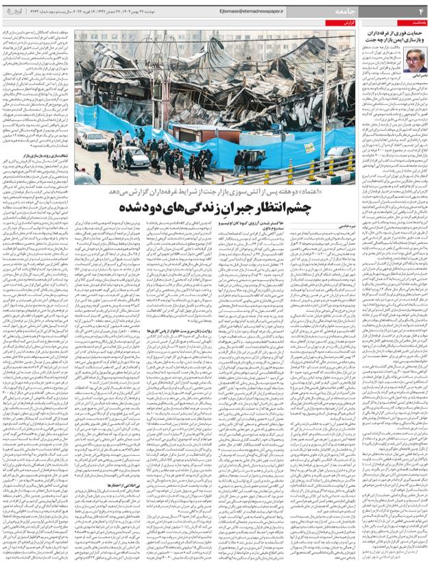 حمايت فوري از غرفهداران و بازسازي ايمن بازارچه جنت