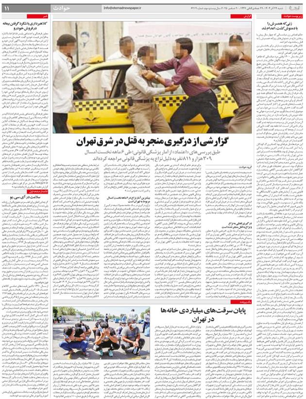 گزارشي از درگيري منجر به قتل در شرق تهران