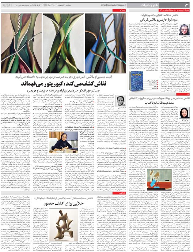 نقاش كشف مي‌كند، كيوريتور مي‌فهماندخلأيي براي كشف حضورآميزه غزل فارسي و نقاشي فرنگيمصاحبتِ نقاشانه با آفتاب